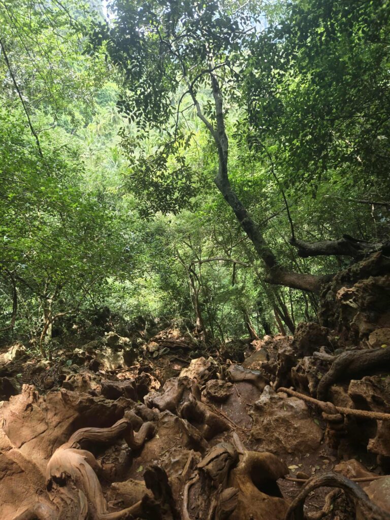 This is not rock-climbing gear, but the call of life (so similar to the call of death at times…) must be answered. And so we clumb. That’s an obscure past-tense from Middle English! That’s exactly what I was thinking hauling through the mud and through running water and monitor lizards while slipping along a muddy rope upward ever upward ever upward. I was thinking of how I could finally use clumb. It was a trek. The participation trophy was a swift 70-100 foot fall onto stone. So we chose to not fall.