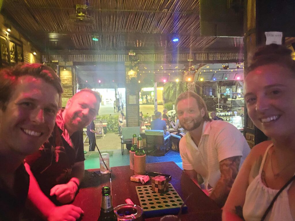 After our trip we met up with Brandon and Jay, our new friends from Chelmsford. We met at a place called the Cotton Club, and like everywhere in Thailand the beer was $3 and the pool was free. It was their last night in town and things went on for a little while longer than it needed to…but you only live once no matter how long or short it is. We had a great time with them, and we did meet up with them in the UK, and I ended up celebrating my birthday with them. Photos to come when we get there. The next day we went to Railay Beach.